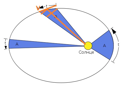 Причем, чем больше радиус сектора, тем меньше дуга, и естественно, скорость движения планеты, поскольку время постоянно.